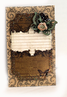 Here I fussy cut out one of the time pieces from the Prima Engrave Paper, then added layers of journal paper, and attached them together with an eyelet to form a piece that you can journal on, record memories, or put small photos onto.