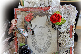 I wanted to create something romantic and bold so I pulled out the reds and blacks from the kit, did some hand stamping throughout the album and added lots of romantic details.